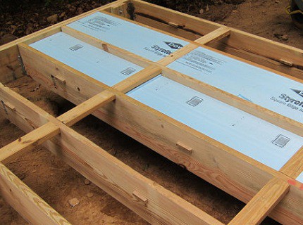 Шаг четвертый. Уложите пенополистироловые плиты внахлест (современные изделия позволяют сделать это – торцевые части в них имеют специальные вырезы).