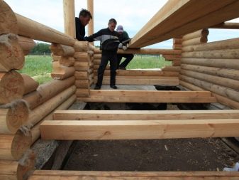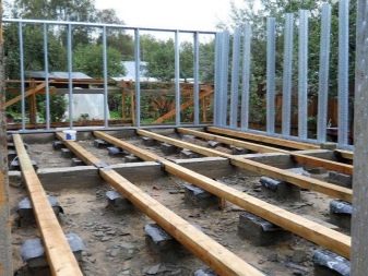 Лаги замуровываются в фундамент здания, если его площадь небольшая, чтобы длины брусьев хватило для надежной связки конструкции. В противном случае, или если горизонтальные опоры уже нельзя закрепить на основании, применяют «плавающий» пол на опорных столбах.