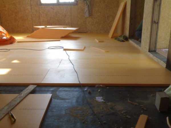 К слову, то для жесткости конструкции можно уложить плиты ОСБ, причем сделать это можно непосредственно поверх стяжки, если поверхность пола выровнена.