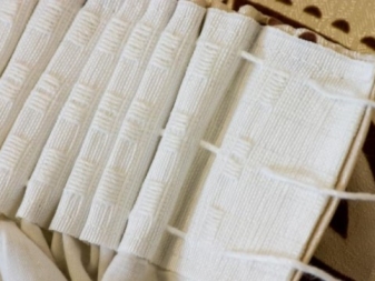 - Крепление крючков осуществляют не на шнурах, а на специальных петлях, вшитых в ленту.