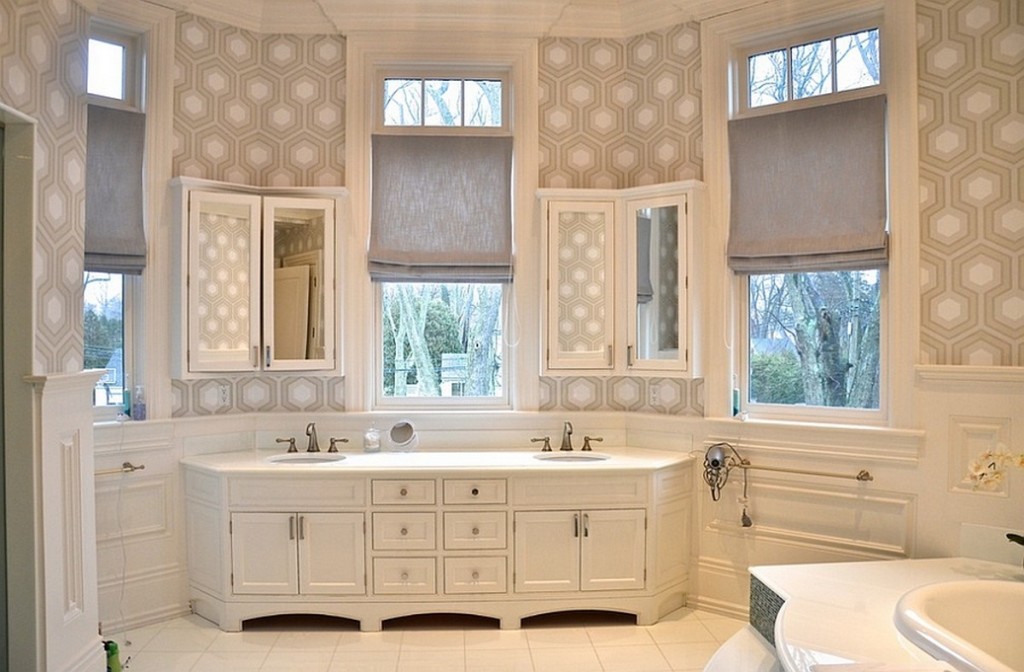 В первую очередь необходимо обратить внимание на рулонные материалы с небольшими выделяющимися рисунками. Иногда контраст бывает весьма уместен, если он не является главенствующим и не перетягивает на себя внимание