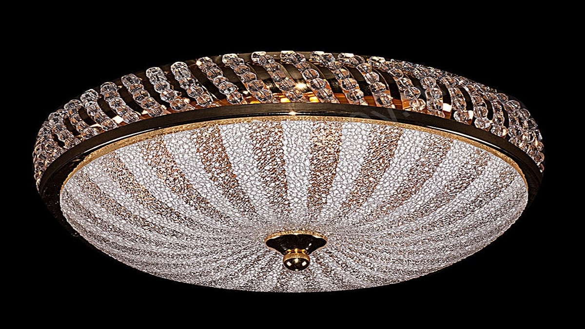 Элемент освещения устанавливается непосредственно на поверхность потолка и практически не удаляется внутрь комнаты. Такие люстры актуально устанавливать при низком потолке от 2 до 2,5м. Крепление производиться за счет потолочных конструкций, которые скрываются верхней юбкой светильника.