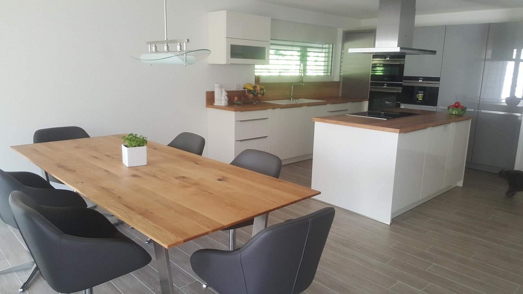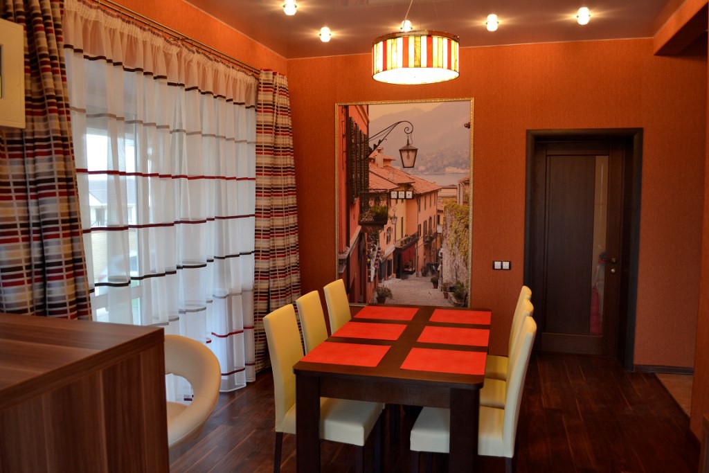 Для столовой или кухни очень важно придать атмосферу простора. Игра теней и света здесь очень важны
