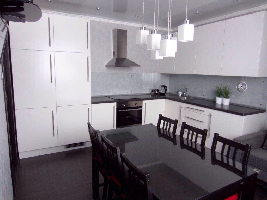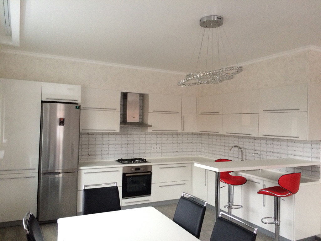 Кухня в стиле хай-тек — выбирая люстры на кухню хай-тек, стоит присмотреться к лаконичным конструкциям из стекла и металла, без декоративных элементов и лишних деталей.
