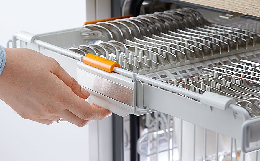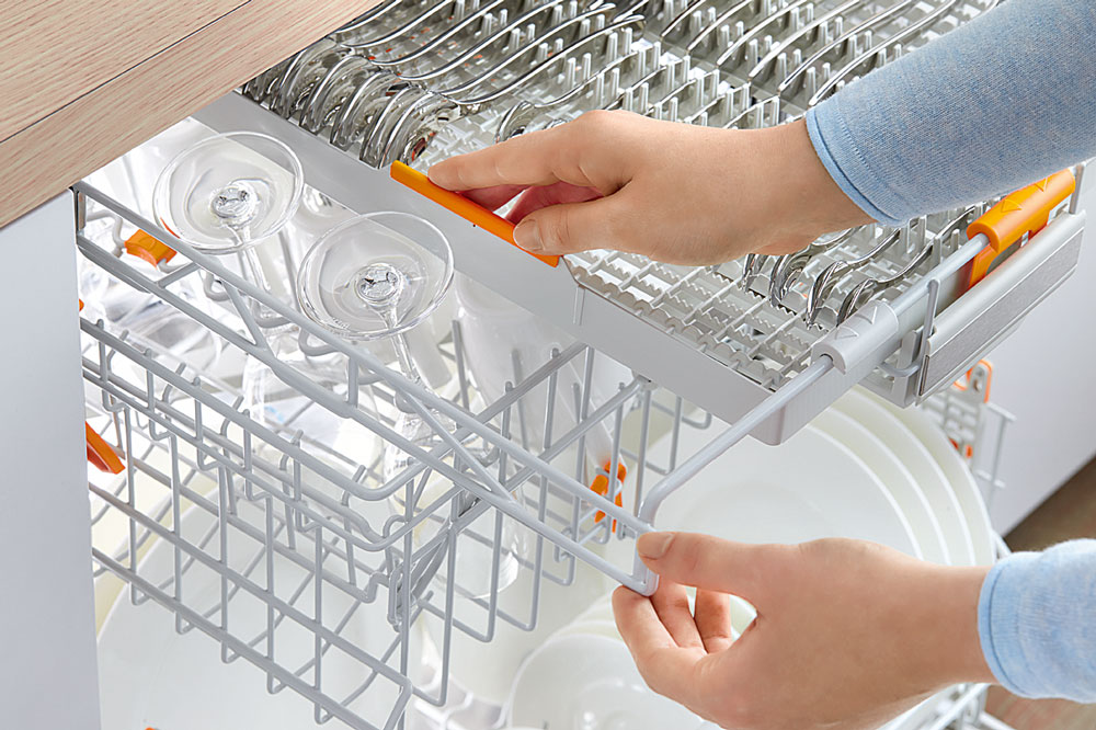 В ряде моделей верхний короб можно переставлять по высоте — это полезно, если вам нужно отмыть в нижнем коробе крупногабаритную посуду. Точно так же можно переставлять по высоте и третий, верхний короб для столовых приборов. Так, с помощью системы регулировки высоты InstantLift в моделях Asko вы можете освободить больше места в верхней корзине. В поднятом положении пространство лотка составляет 40 мм по высоте, а в опущенном положении — до 58 мм. Аналогичные возможности предоставляет и 3D-поддон у Miele.
