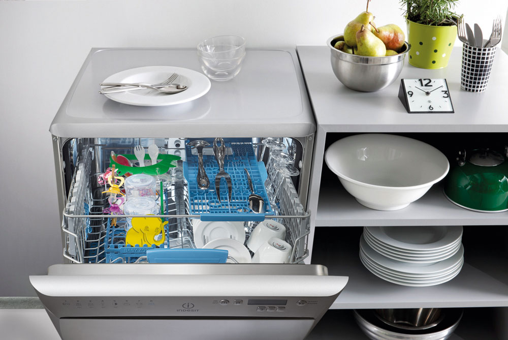 3. Настольные, или компактные, модели (45*55*45 см) можно даже встроить в подвесной шкаф. Такие устройства – отличный, бюджетный выход для холостяка или семейной пары. Однако они уступают своим большим сородичам по экономичности и качеству мойки.