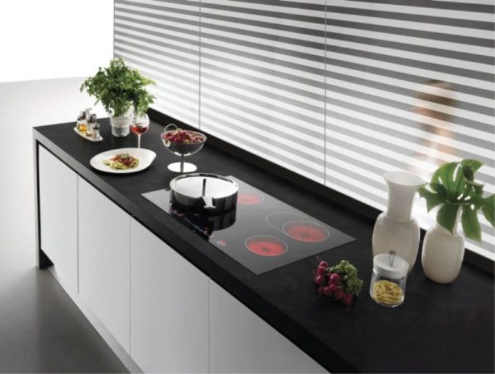 Стеклокерамика. Дорогостоящие панели из стеклокерамики выглядят невероятно стильно, быстро нагреваются, остывают и великолепно проводят тепло. Плюсом таких варочных панелей является то, что они подогревают еду только в вертикальном направлении, в то время как незадействованная рабочая поверхность остается холодной. Это снижает риск возникновения ожогов.