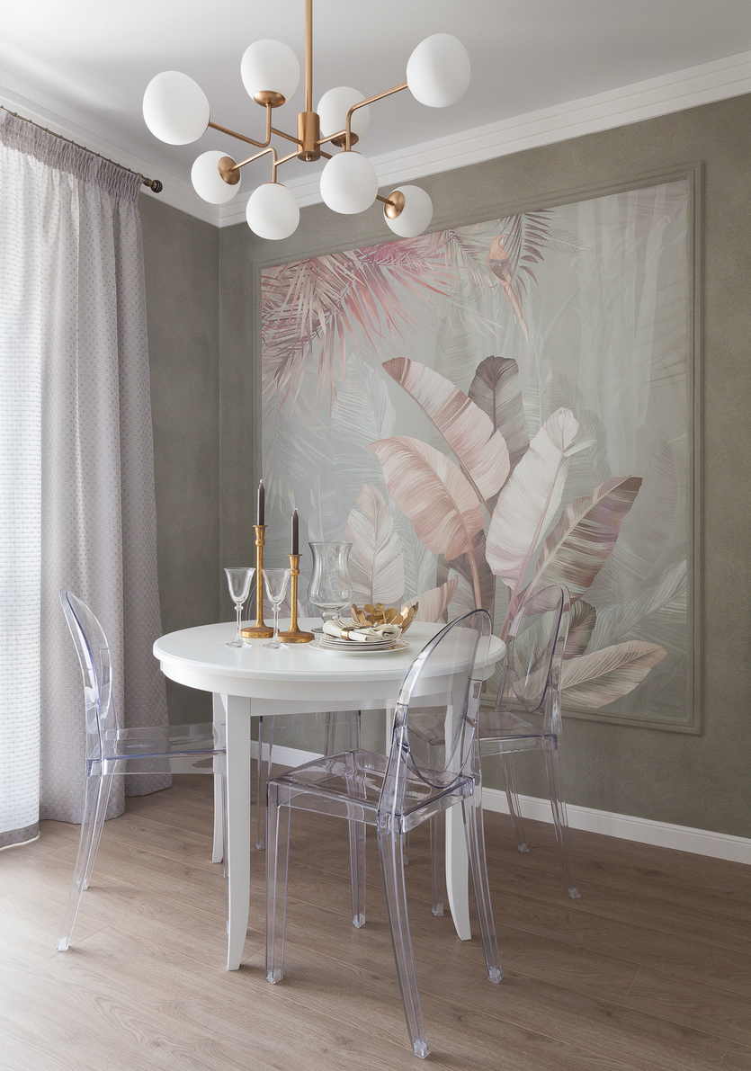 В гостиной вы сможете выделить место для отдыха с помощью обоев со спокойным дизайном, а также привлечь внимание к основной части комнаты, где будут собираться гости и близкие, используя обои с узорами или насыщенными оттенками.