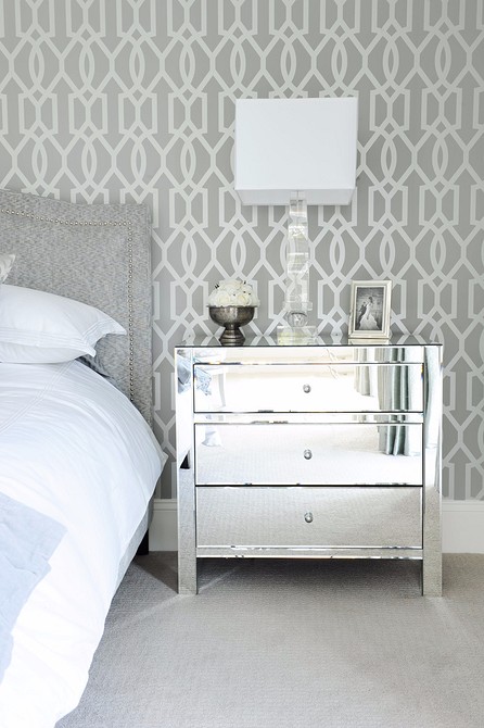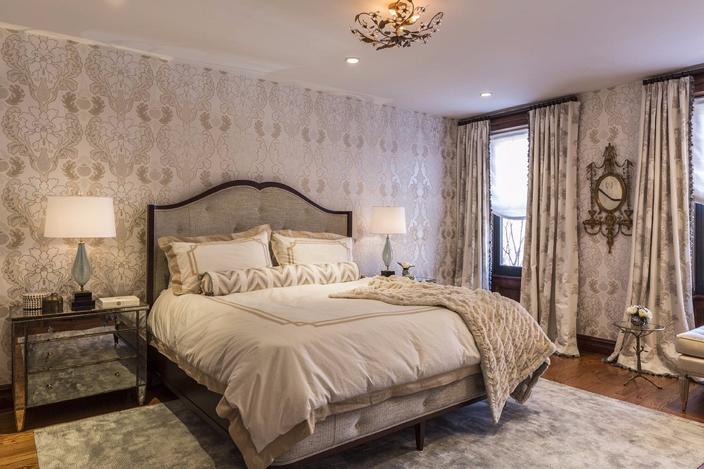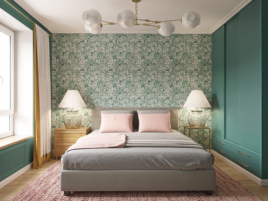 С помощью узорчатых обоев все чаще оформляется только прикроватная зона. Украсить эту стену можно, добавляя к дизайну обоев эффектные молдинги, зеркала, яркие аксессуары.