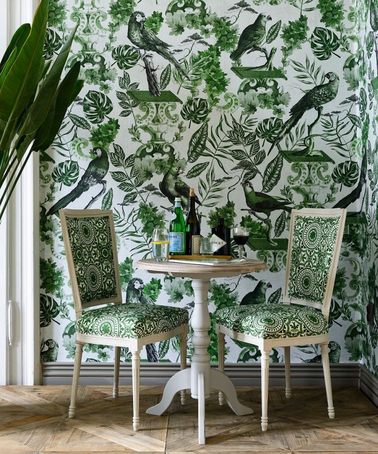 Экология и бережное отношение к природе – тема, которую будет активно обсуждаться в ближайшие годы. Этот тренд прослеживается и в интерьерах: все чаще используются дизайны с пышной растительностью, тропическими мотивами, с животными и птицами – от реалистичных до примитивных изображений.