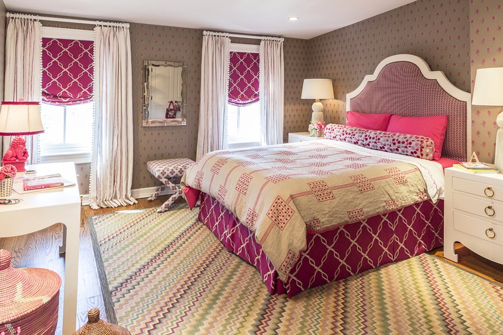 Однотонные материалы. При этом для каждой комнаты принято выбирать определенный цвет. Например, для небольших комнат отлично подойдут светлые приглушенные тона, в больших допустимо использовать темные и насыщенные. Любители экспериментов могут попробовать оформить интерьер в ярких тонах.
