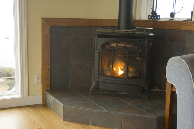 Располагать камин можно как в наружном углу комнаты, так и во внутреннем, но если стены деревянные, их необходимо защитить от сильно нагревающейся задней стенки камина.
