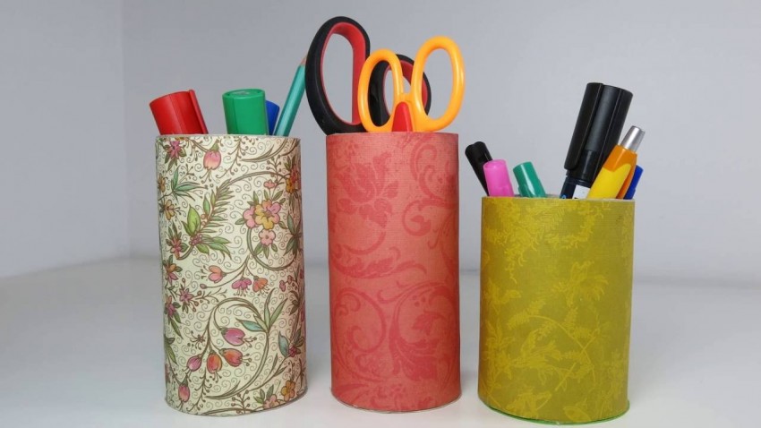 Самые находчивые мастера нашли применение даже обычным втулкам от туалетной бумаги для создания невероятных вещиц. Следовательно, какие же поделки из втулок от туалетной бумаги можно сделать своими руками? Чтобы сделать стильную подставку из данных материалов для начала необходимо украсить каждую деталь в отдельности, а уже потом соединять их по своему усмотрению. Для декора подойдет совершенно любая деталь: пуговицы, бусинки, кружевная ткань и старые обои. Использовать можно все, что сможете найти в доме. Если вдруг вы не нашли втулок, то можете их заменить чем-то другим. В этом случае, можно сделать карандашницу из консервной банки и точно также ее оформить.