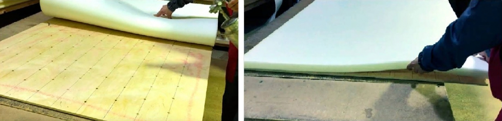 - Для правильного нанесения на поролон разметки, рекомендовано сначала нанести ее на картон того же размера, что и облицовываемая панель.