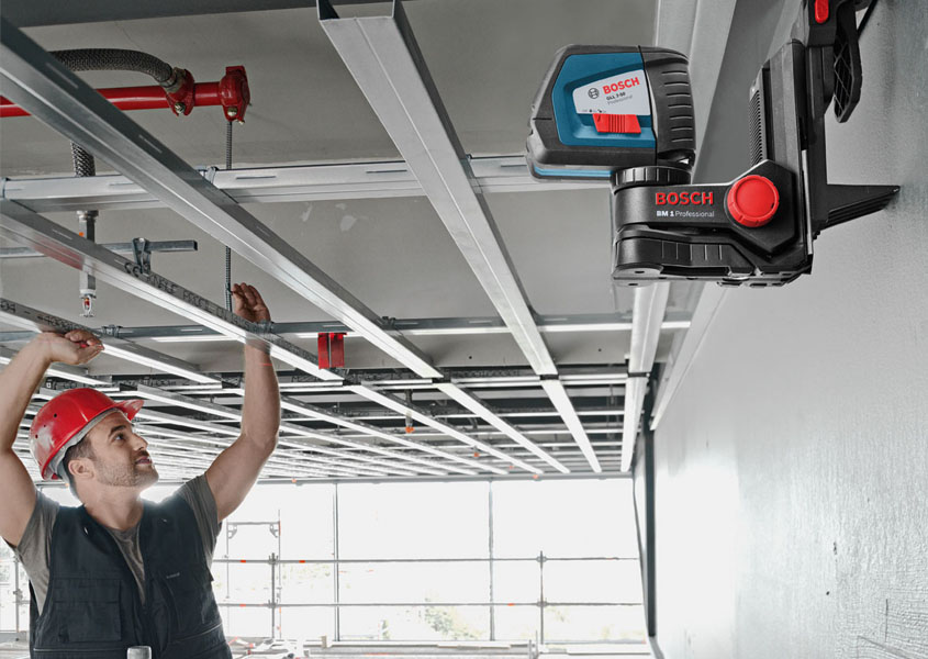 В отмеченном месте необходимо установить лазерный уровень и с помощью световых линий задать часть сетки, которую впоследствии можно просто очертить карандашом. Стоит учесть, какой вид каркаса используется — металлический одноуровневый, многоуровневый или деревянный. С обрешеткой под гипсокартонный многоуровневый потолок придется повозиться, особенно тем, кто не имеет достаточного опыта подобных работ.