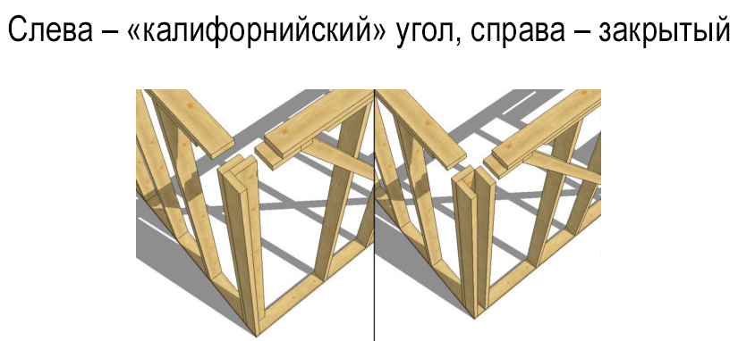 В Америке существует несколько способов сооружения углов, многие из которых либо устарели, либо очень редко применяются. Поэтому каркасный дом для круглогодичного проживания у них чаще всего имеет углы двух типов: