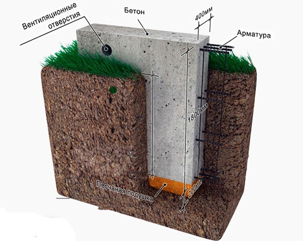 - Конструкция фундамента закрепляется сварным ростверком и закрепляется обвязкой.