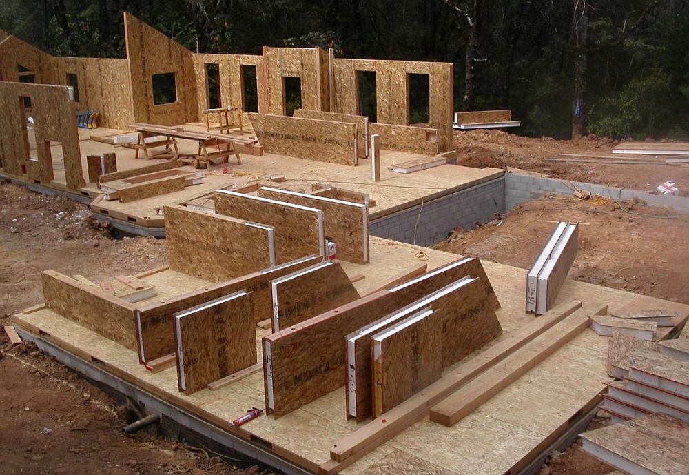 Канадская технология позволяет еще больше сократить сроки строительства дома за счет использования готовых SIP-панелей. Обычно они представляют собой «пирог» из двух слоев обшивочного материала и уложенного между ними утеплителя. Толщина панелей и используемые для ее изготовления материалы могут варьироваться.