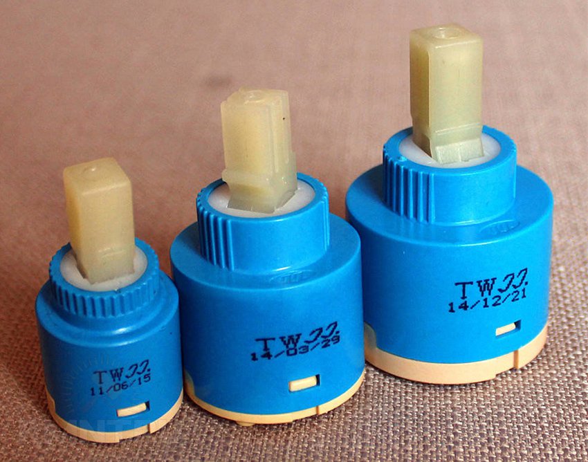 Большинство производителей однорычажных смесителей используют в сборке картриджи размерами 28 мм, 32 мм и 35 мм. В изделиях торговых марок «Kaiser» и «Grohe» часто можно встретить функциональные механизмы размерами 40 мм и 46 мм.