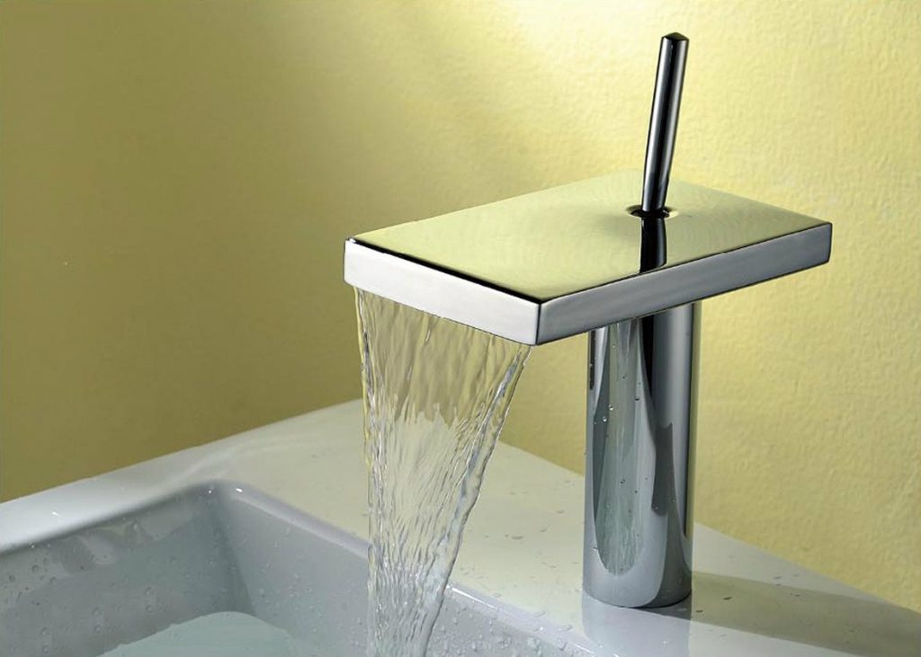 Такой смеситель может иметь вид изогнутого камня, желоба и прочих предметов. На сегодняшний день дизайнеры стараются производить новые формы и виды, чтобы разнообразить скучный и приевшийся набор сантехнических изделий. Домашний водопад отличается тем, что при спуске воды нет расплескивания и шума воды. Даже если кран будет расположен высоко, то сильного разбрызгивания не будет.