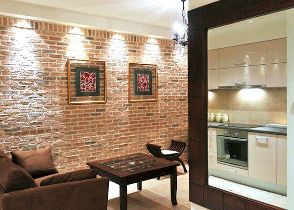 Следует учесть, что выкладка стен старинным кирпичом в малогабаритном жилье нелогична и неудобна. Там она только поглощает много места, которого всегда недостаточно. Но это не означает, что надо отказываться от своего замысла полностью. Неплохой заменой полноценной кирпичной стене является специально оформленная плитка. Она отличается малой толщиной и позволяет реализовать самые смелые эстетические замыслы.