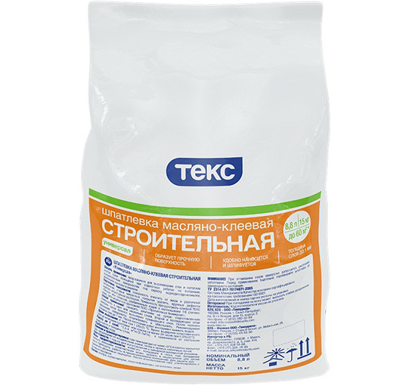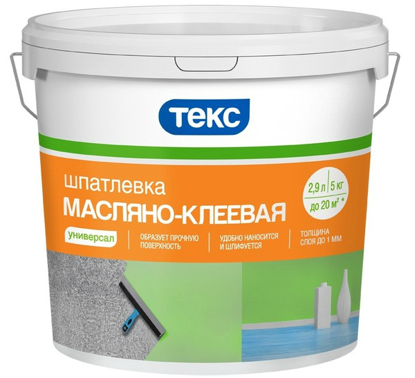 Технические характеристики предполагают, что связующим веществом в масляно-клеевом составе является олифа. Наполнителями являются клей КМЦ, мел, пластификаторы, сиккативы, вода и прочие наполнители, которые производители добавляют для улучшения качества и потребительских свойств материала.