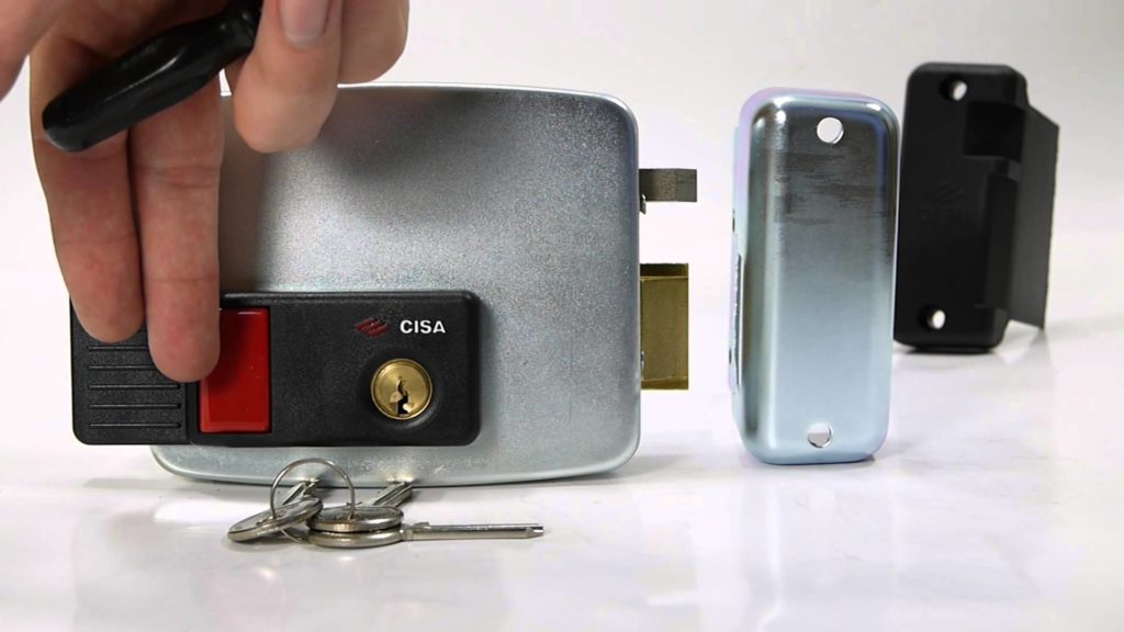 При подаче на катушку напряжения запорный элемент под действием магнитного поля перемещается и закрывает дверь. Недостатком таких механизмов считается большая сила тока, 2-3 A. Электромеханические замки могут открываться как при помощи звукового сигнала, так и обычным ключом.