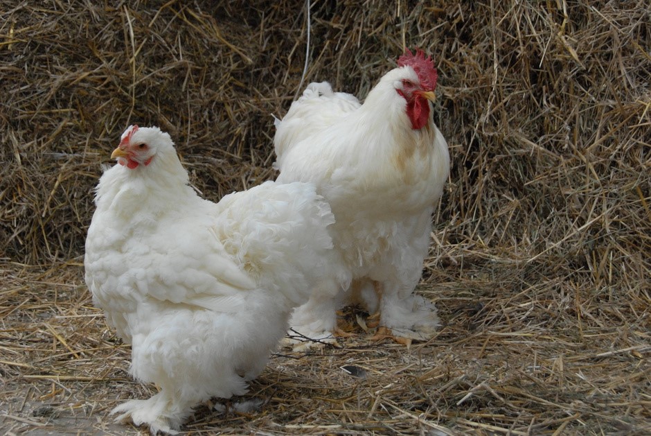 Согласно стандарту клуши должны быть покрыты полностью белыми перышками и таким же пухом. Белоснежный окрас не допускает наличие каких-либо вкраплений.