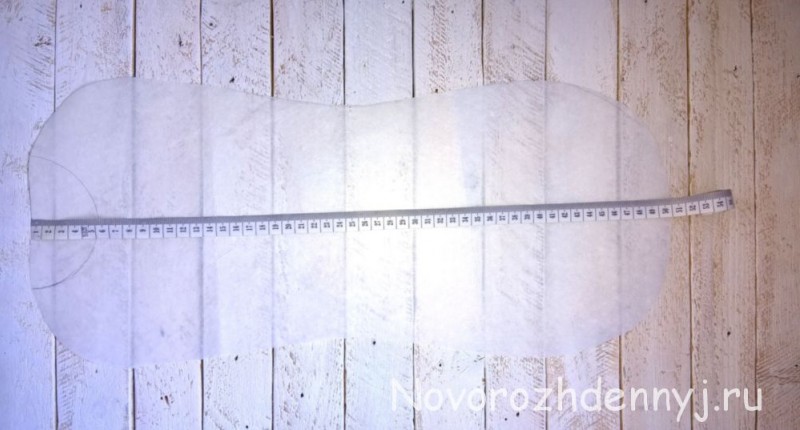 Для того чтобы получить готовое изделие для малыша с ростом 50 см и меньше (с небольшим запасом на вырост), увеличьте на своем экране выкройку так, чтобы длина выкройки стала равна 50 см. Затем приложите к экрану бумагу для выкройки и обведите по ней карандашом контуры детали.