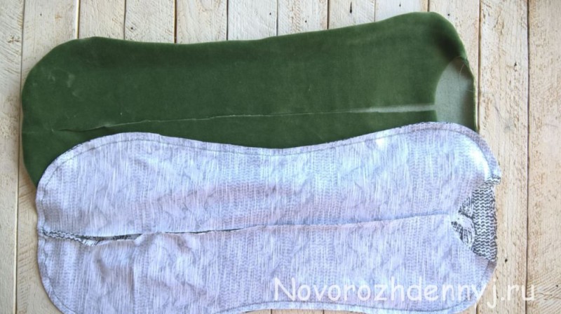- Трикотажным швом стачайте эти детали по всему периметру, кроме горловины, и то же самое проделайте и с деталями из подкладочной ткани.