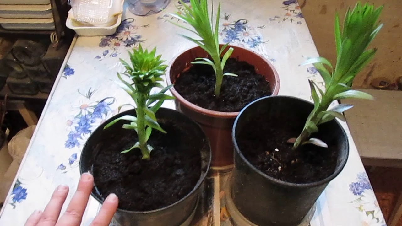 На заметку! После того как стебли лилии достигнуть 15 см, цветок можно пересадить в открытый грунт. Если погода за окном теплая и солнечная, лилию можно держать на воздухе.