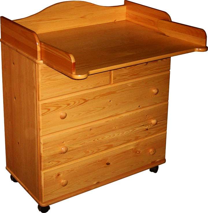 Универсальное хранилище детских вещей и то же время стол для пеленания, переодевания ребенка. Большинство моделей изготавливаются с колесиками для удобного перемещения в другое место. Заводские комоды делают преимущественно в светлых тонах, чтобы они подходили под интерьер детской комнаты.
