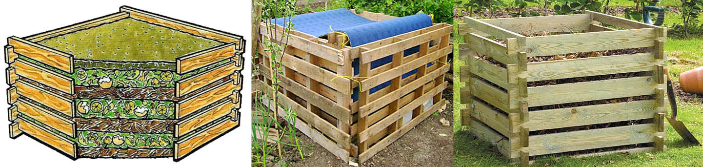 Чаще всего ящики для компоста делают все же из дерева. Лучший материал – строительные поддоны (паллеты) и доски от них, см. рис.: