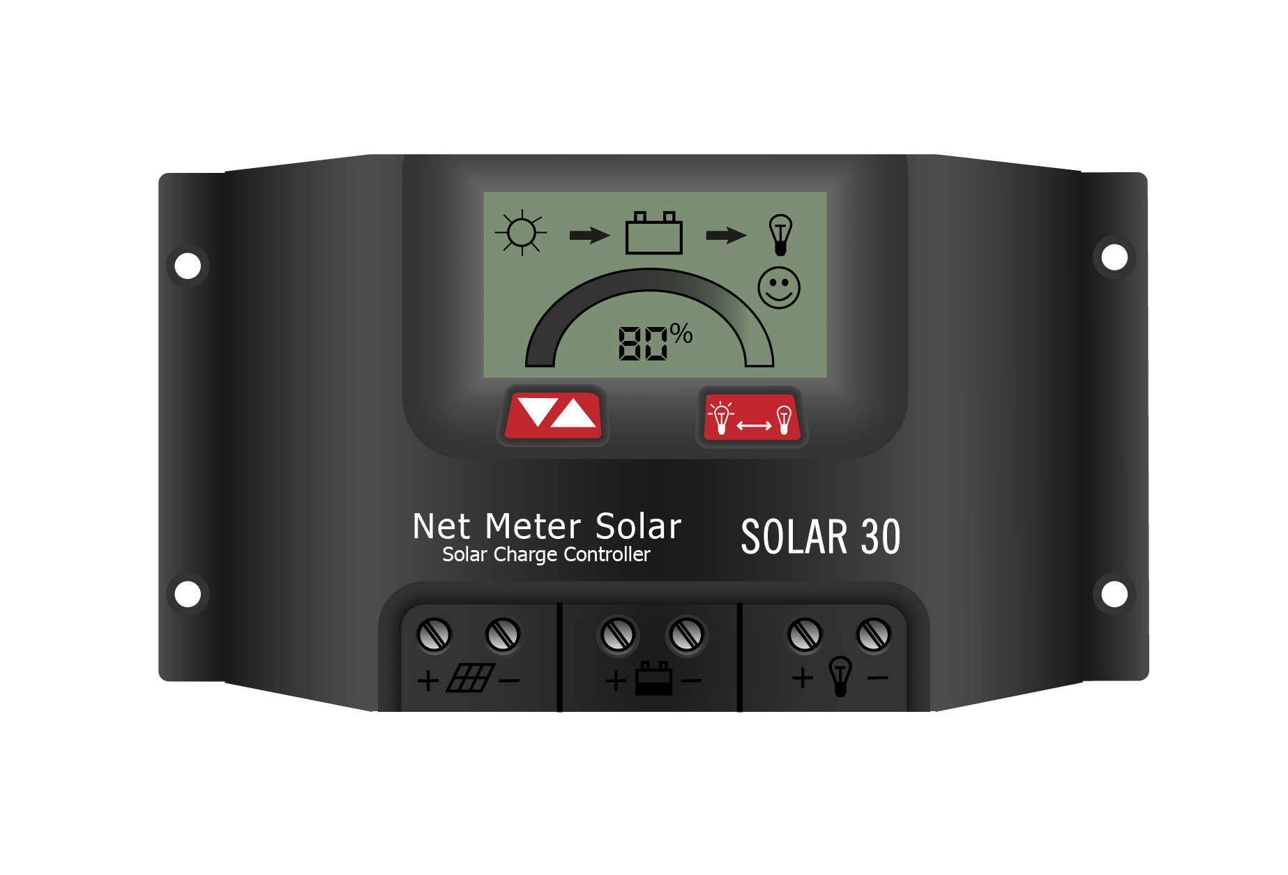 Встроенный промышленный микроконтроллер, на базе которой реализована 4-х ступенчатая функция широтно-импульсного преобразования PWM. Работает со свинцово-кислотными и гелиевыми аккумуляторными батареями. Рассчитан на напряжение 12-24В и силу тока 10A, 20A, 30A в зависимости от модификации. Все рабочие параметры отображаются на ЖК-дисплее. Также в числе достоинств модели – встроенная защита от короткого замыкания, обратная защита, защита от перегрузки. В процессе работы отмечен низкий уровень нагревания устройства.