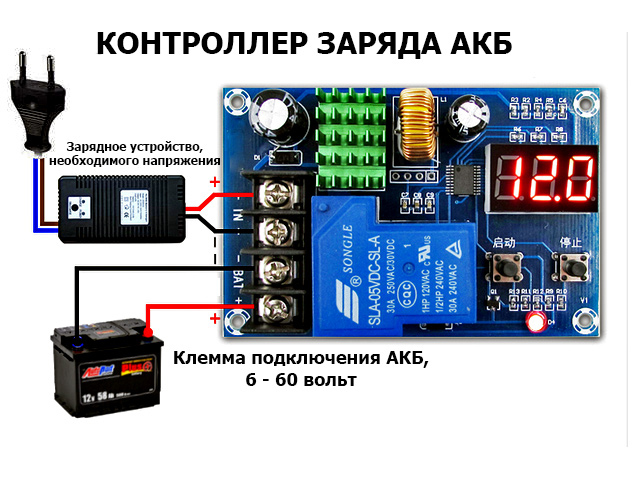 Рассчитан на входное напряжение в пределах 6-60В. Модель отличается высокой точностью отображения и управления – 0,1В. Уровень заряда отображается на ЖК-мониторе. Допускает установку уровней начального и конечного напряжения. Имеет компактные размеры 81*54*18 мм.