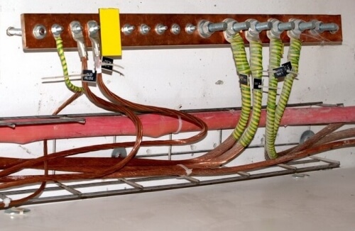 - Конец шины при помощи болта соединяют с клеммой провода заземления, ведущего к распределительному щитку.