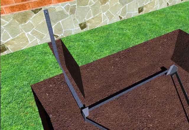 - Болгаркой заострите концы стальных уголков или прутов, установите в намеченных точках и загоните их вертикально в грунт при помощи кувалды. Электроды должны выступать над дном траншеи не больше, чем на 10 см.