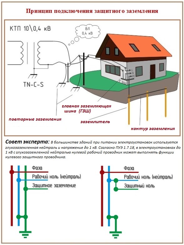 Учтите! Для частного жилья повторная защита PEN-проводников ВЛИ не освобождает от установки специального заземляющего контура. О том, как сделать заземление в доме своими руками, мы рассказывали в соответствующей статье!