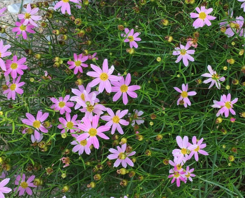 Кореопсис розовый низкорослый многолетний вид, образующий пышный куст. Цветки мелкие, соответственно названию, розовой окраски.
