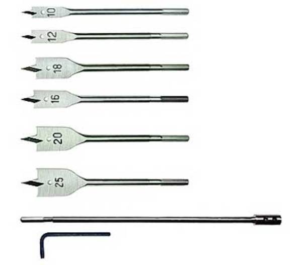 Копьевидные сверла используют с дрелью исключительно на низких оборотах.