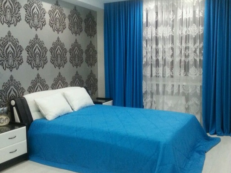 Цвет одинаковый, то текстура противоположная: матовые шторы, но глянцевые обои.. Также возможно сочетание штор с обивкой мебели