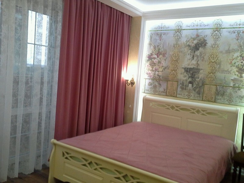 Розовый цвет выступает некоторым возбудителем. Яркие цвета не рекомендуется вешать в спальне – месте отдыха и спокойствия. Однако, если выбрать комбинированный вариант, как тюли светлого цвета, а шторы с ярким розовым оттенком, комната будет казаться богато украшенной.