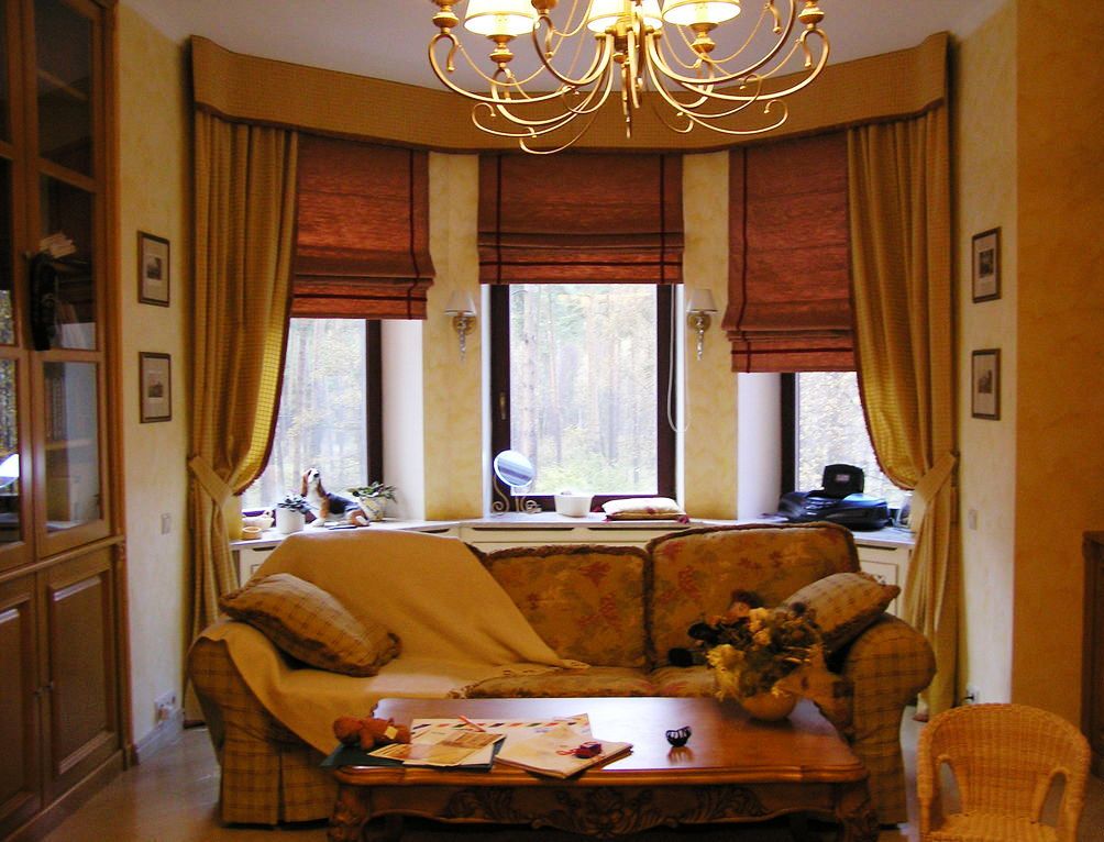 Тканевые украшения могут быть использованы для маскировки недостатков окна и самого помещения. Высота оконного проема может быть визуально уменьшена, если декорировать его ламбрекеном.