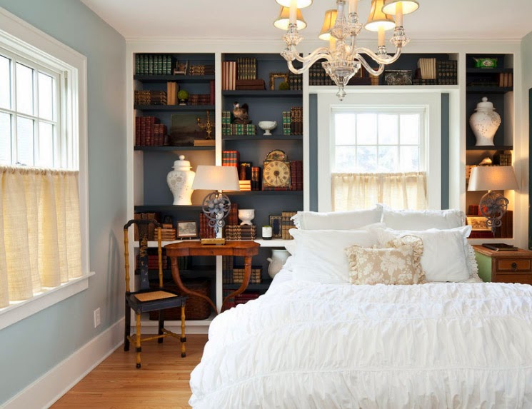 Большинство типов коротких штор прекрасно подойдут для размещения в спальне.