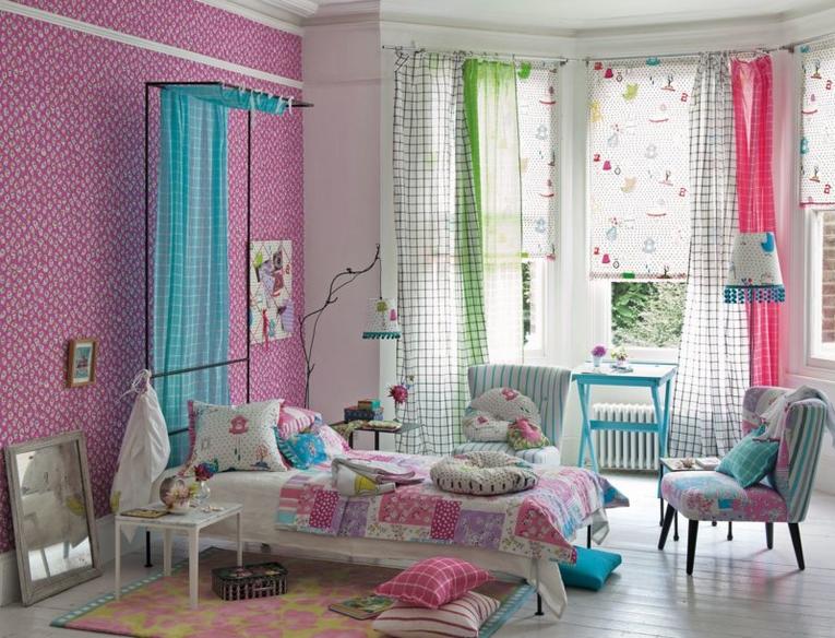 Занавески в детской комнате, как и на кухне, могут содержать яркую геометрию и самую настоящую клетчатую радугу. Это, конечно, не обязательно. Если желаете, остановитесь на соответствующих интерьеру цветами, подбирая занавески в тон к стенам.