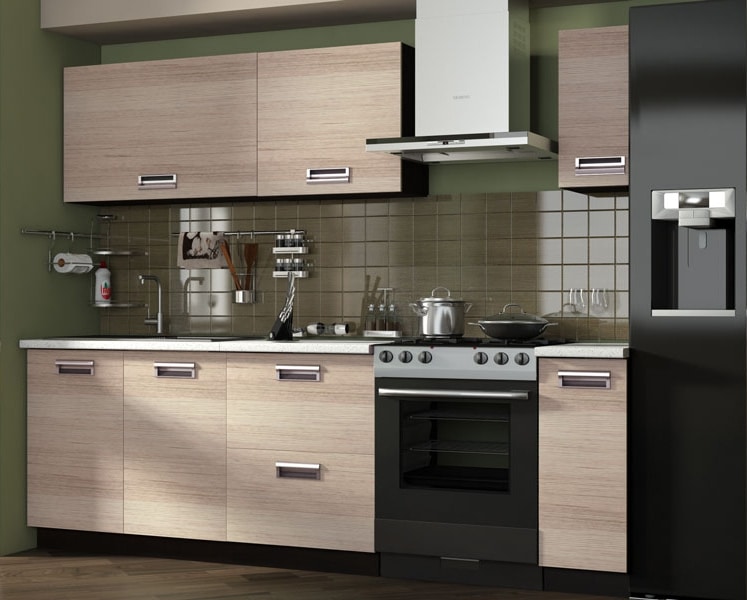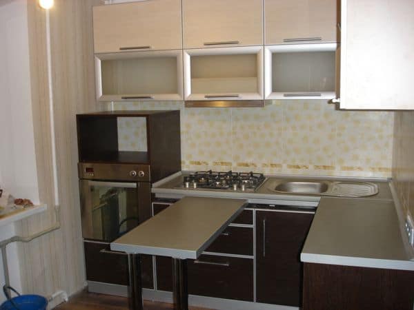 Таким образом, очень компактно, с сохранением всей функциональности, может быть укомплектована кухня даже самых маленьких размеров. За такие её возможности кухонную мебель иногда называют большим конструктором.