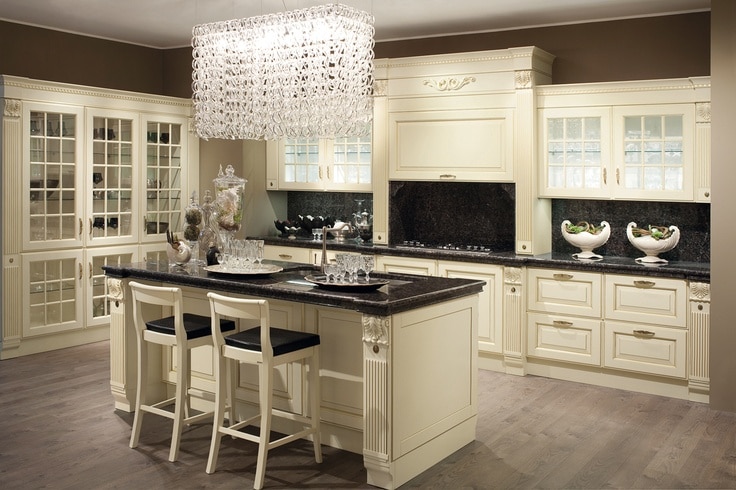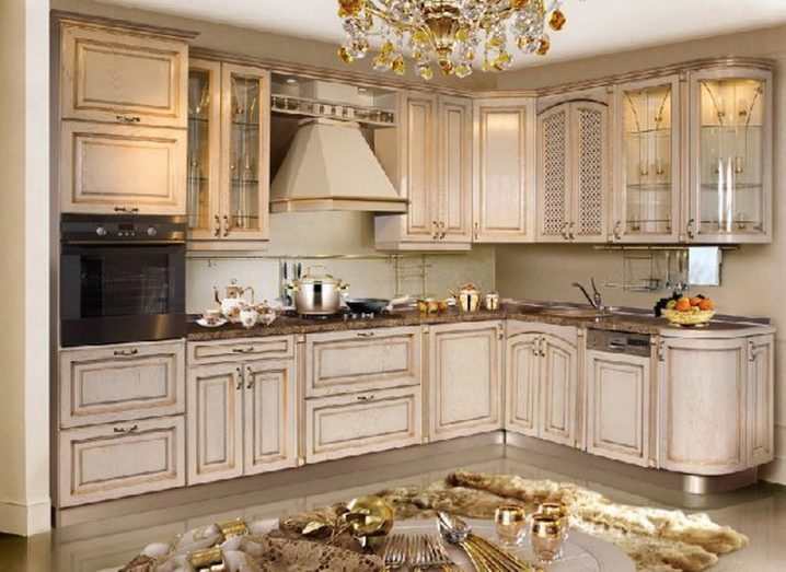Для фасадов используют такие ценные породы древесины, как дуб, ясень, орех, липа, бук. Для дополнительного декора применяют разнообразные технологии искусственного состаривания и различные лакокрасочные покрытия. Приобретать мебель из массива стоит только у проверенных производителей, хорошо зарекомендовавших себя на рынке. Этот фактор имеет значение, поскольку высокая цена таких гарнитуров обусловлена сложным технологическим процессом подготовки материала. Отсутствие нарушений гарантирует качество мебели. В противном случае существует риск приобрести дорогое изделие, которое быстро потеряет свой облик.