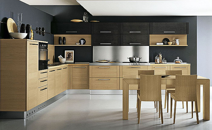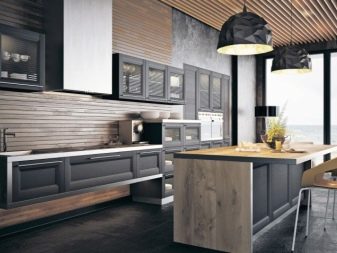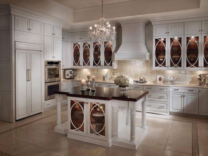 Предметы, составляющие кухонный интерьер, отличаются от аналогов, расположенных в других комнатах. Например, шкафы для кухни выглядят иначе, чем платяные, которые находятся в спальне, гостиной или прихожей. Существует два вида кухонных шкафов – настенные и напольные. Первые могут иметь глухой или прозрачный фасад, вторые – собственную специфику. Например, отделение для мойки выглядит иначе, чем для встроенной техники или посуды.