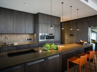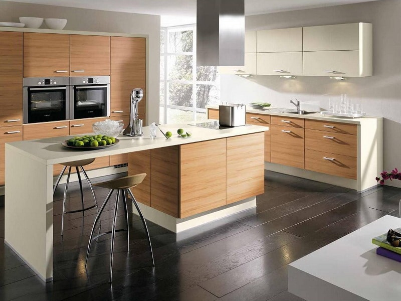 Благодаря разнообразию решений возможен перенос части шкафов под рабочую поверхность в центре помещения, которая называется «остров». Он не похож на стандартный обеденный стол, хотя может выполнять и его функции.