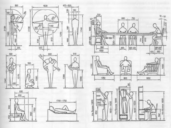 На этапе проектирования мебели, независимо от того будет это табурет или кухонный гарнитур, учитывают требования эргономики. А именно учесть потребуется соответствие предметов обстановки антропометрическим данным человека. Так, при изготовлении мебели для детей учитывают категорию роста, к которой относится ребенок. При изготовлении стульев, столов, кухонной мебели учитывают усредненные показатели, рассчитанные на среднестатистического человека.